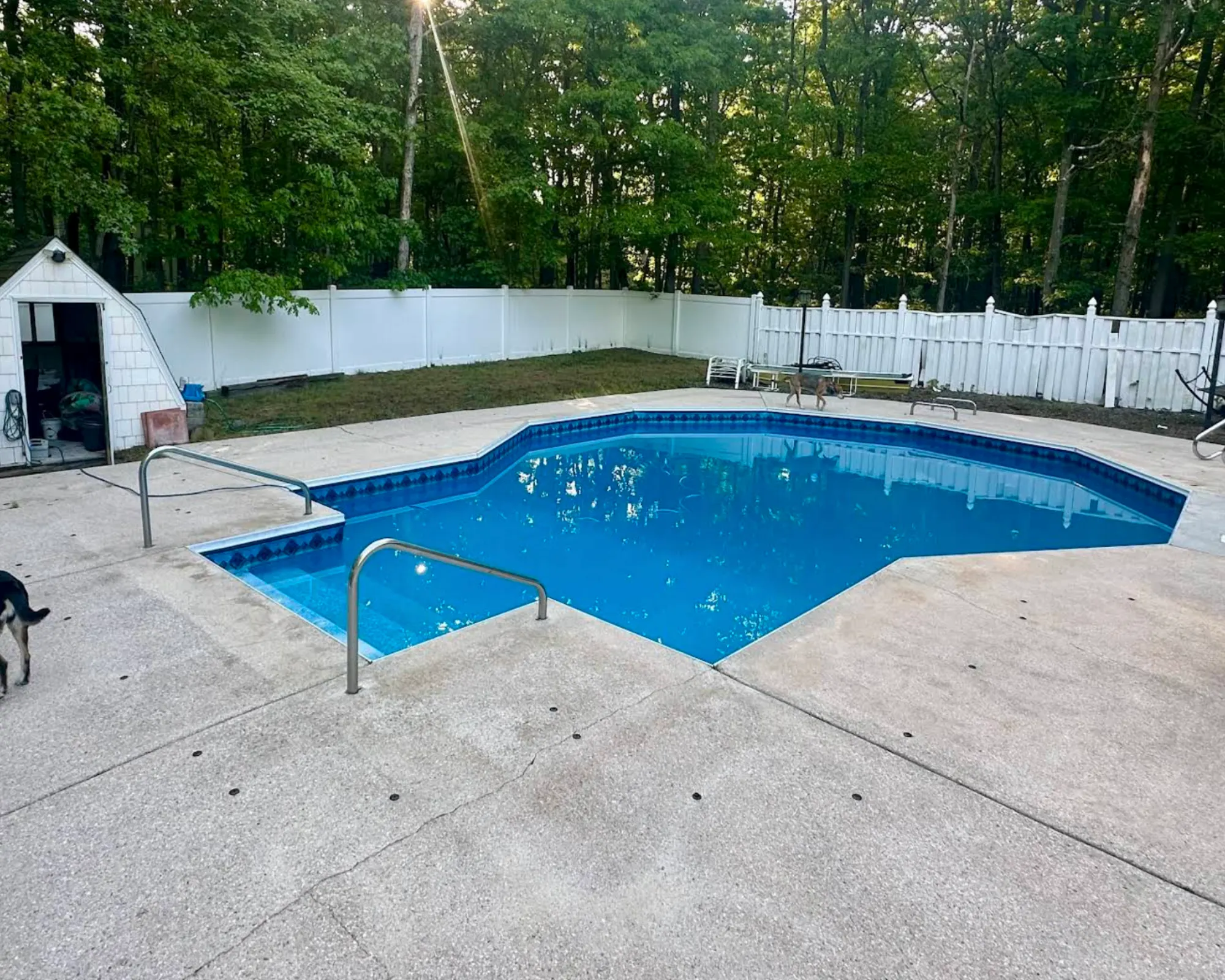 LEAVE US A REVIEW → "I’ve had my pool since 2005 and never had the cement deck power-washed. It was so dark and stained! Hallman’s Powerwashing did an amazing job! I can’t believe how white and clean it is! Highly recommend this company!"